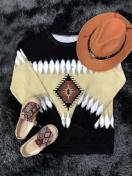 女性用エスニック幾何学プリントクルーネックプルオーバー - 長袖カジュアルスウェットシャツ、土着色調、洗濯機可オールシーズン快適、レギュラーフィット、キュートなデザイン