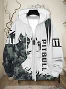メンズピットブルーデザインフーディー - カモフラージュ&ホワイト長袖ジップアップスウェットシャツ、ソフトポリエステル素材、軽量で丈夫なアウトドアスポーツ&カジュアルウェアに最適、春/秋に最適、スポーツスウェットシャツ | スタイリッシュなジップアップ | 耐久性のある素材