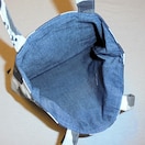 ・こちらはマチなしぺたんこバッグ。持ち手も同生地で小さめミニサイズです。大容量バッグでないので(二つ折りして両サイドたたむとスマホくらいのサイズ)サブバッグとしても良いかと思います。