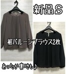 新品☆S♪体型カバー裾バルーンブラウス2枚♪暖か裏地付きも♪☆Q490