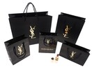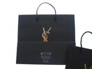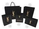 イブサンローランのショッピングバッグになります。使い道によって選べる5サイズを、1枚づつセットにしました。全てにYSLのブランドロゴがゴールドカラーでプリントされており、マットな質感で落ち着いた印象の1・3には地球資源の保全に貢献しているFSCマーク入り。表面にフィルムを貼り付けた光沢がある紙袋4・5には、箔押しロゴで高級感が増しています。ラッピング、サブバッグ、リメイク等にご活用ください。