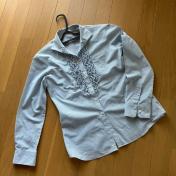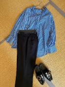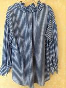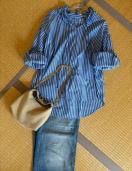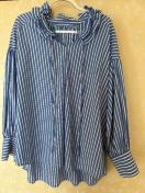 昨年、店頭で10,000円で購入。フリーサイズ、長袖、ブルー系のストライプ。お出かけ時に3.4回着用、綺麗な状態です。パンツ、スカートどちらにも合います。ブルー系のシャツかブラウスは一枚あると使えますよ。爽やかで万人受けします。秋の行楽やお子様の学校イベントにも爽やかな印象です。デニム合わせで休日スタイルに、黒パンツやスカート合わせでキレイめに。レタパライト発送予定、ノークレームノーリターンでお願いします。合わせている洋服、バッグは参考例です。 -