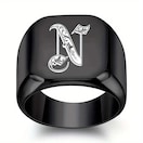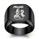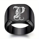 メンズ 大型スクエア 26文字 リング ブラック パンク ステンレススチール イニシャルリング 結婚カップル ジュエリー ギフト