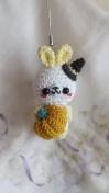 小さな魔女ハットをチヨンと乗せ、かぼちゃを抱えたうさです。
