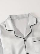 2点セット メンズパジャマセット 通気性長袖&パンツ ソフトポリエステル混紡 無地カラー ボタンアップ ホーム&アウトドア用 寝巻き