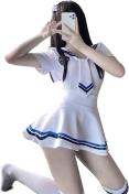 Yanjing セーラー服 セクシー コスプレ 半袖 可愛 ミニ スカート 学生 海軍風 JK 制服 い かわいい ランジェリー ネクタイ セット ホワイト レディース ミニスカート