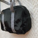 ブラックのスクールバッグ風のミニバッグ。持ち手付きでミニポーチやインバッグにも便利です。