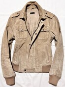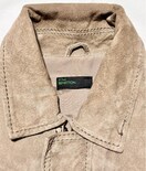 スエード皮はよく擦れる箇所が色濃くなる性質なので一例として襟内のアップ画像参照下さい