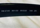 →型番(例:RB3025)、レンズサイズ(例:55mm)、原産国(例:Made in Italy)が本体にクッキリと刻印されている