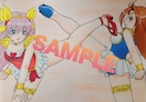 素人アナログ絵故塗りムラ、はみ出し、下描き跡等有。掲載画像はムラが極端に写り、現物と色の違い多少有。特に灰色、肌色の写りムラ酷いです。
