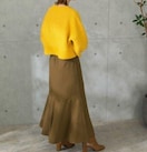 腰周りが程良くタイトな切替デザインは、スタイルアップを実現します。女性らしさがありつつも、ラフな印象もプラスしてくれるスカート。主役映えするため、プレーンなトップスに程良いアクセントを加える1着です。