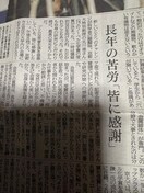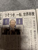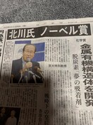 北川先生は、分子科学研究所の研究顧問のほか、2004年から2006年には名古屋大学の非常勤講師を務められるなど、ここ愛知でも化学者の育成や化学分野の発展に御尽力いただいており、この度の受賞は、愛知で日々研究に取り組む研究者や次代を担う学生たちに大きな勇気や希望を与えるものです。これを記念にこの新聞を保管してみては如何でしょうか。
