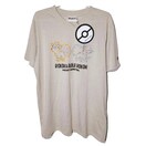 任天堂から発売されているゲームソフト「ポケットモンスター」シリーズに登場するキツネポケモン、ロコンとアローラのすがたのロコンが線画でフロントにプリントされているTシャツ。左袖にモンスターボールのワッペンが刺?がされ、ファンにはたまらないアイテム。