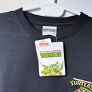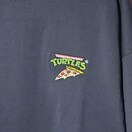 ミラージュ・スタジオから出版されたアメコミを原作とするアニメ『TEENAGE MUTANT NINJA TURTLES(ティーンエイジ・ミュータント・ニンジャ・タートルズ)』のレオナルド、ラファエロ、ミケランジェロ、ドナテロがタートルワゴンで走行している姿をバックプリントしたTシャツ。左胸にはタイトルロゴが刺繍され、ダメージプリントなどレトロなデザインがおしゃれなアイテム。