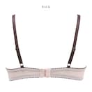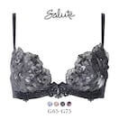 カップサイズに合わせた(※)ツーブロックパッドが効果的にバストボリュームをアップ。カップ前からカップ脇・ストラップへとつづくサポートパネルがバストを寄せて脇すっきり、深く美しい谷間を造形します。カップ面積が小さいので、フロントと谷間が解放され、軽やかなつけごこち。