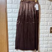 変形プリーツの柄を高めの位置に設定することで、スタイルアップ効果も期待。ウエスト部分はゴムになっているので快適な着心地ながらきちんと見えが叶う万能なアイテムです。