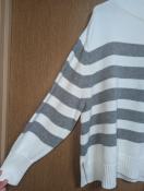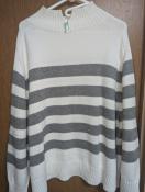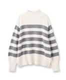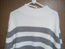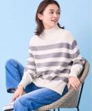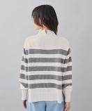 アンタイトル昨季美品コットン×ウール混白×グレーボーダー柄長袖ハイネックニット大きいサイズ4413号15号ざっくりセーター