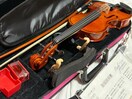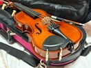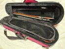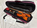 バイオリン本体の他に、ケース、弓、松脂、肩当てがセットになっています。