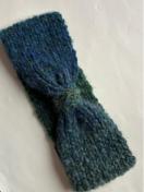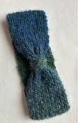 ウール100%の毛糸とグラデーションカラーの毛糸二本取りで、ヘアバンドバンドを編みました。