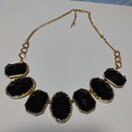 黒のオクタゴナルデザインのネックレス、ゴールドチェーン付き。