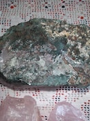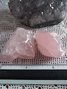 ローズクォーツはかち割りタイプ。白い部分などあります。