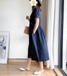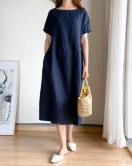 レディース ワンピース ロング丈 ナチュラル 無地 体型カバー 半袖 L