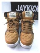 JAYKICKSのハイカットスニーカーを出品いたします。ブラウンカラーで幅広設計(3E)となっており、公式HPによると「通常より0.5cm小さいサイズを選ぶのがおすすめ」とされています。25.5cmの方でも快適に履けるサイズ感です。25cmの方でしたら 25cm大き目ゆったりした感じで履けます 靴下などで調節してください