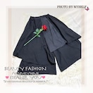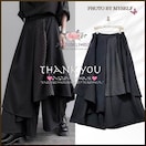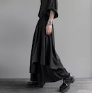┗ワイドパンツとスカートをドッキングさせた個性的なアシンメトリー袴パンツ