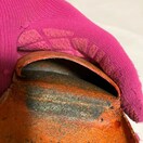 最高級の革を使い、中に金型をいれて槌でたたいて圧着させた、まったく縫い目のない一枚革のような仕上がりです。