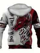 ウルフプリントパーカー、メンズ用クールパーカー、メンズカジュアルグラフィックデザインプルオーバーフード付きスウェットシャツストリートウェア、冬秋、ギフトとして