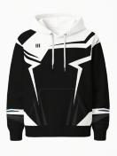 メンズ フーディー - モダンストリートウェア プルオーバースウェットシャツ、ブラック&ホワイト カラーブロック グラフィック、長袖 カジュアル ウィンターアウトフィット 日常・フォーマルイベント用 秋のファッション、幾何学模様、快適素材、フード付きセーター、アーバンスタイル、男性向けプリントフーディー