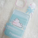淡いパステルカラーと可愛い「くも犬」デザインが目を引く【iPhoneクリアケース】です。