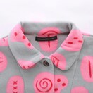 朝が楽しくなるパンのモチーフをプリントしたテキスタイル♪トップスの両サイドにはポケットがついており便利◎ポケットから顔をのぞかせている黒猫ちゃんのアップリケがデザインポイントです。