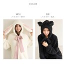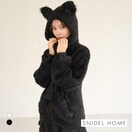 毛足の長い柔らかなニットを使用した、ゆったりとしたサイズ感。ホワイトはラビット、ブラックは黒猫をモチーフにし、フードにそれぞれの耳を立体的にあしらいました。耳の内側までふわふわのニットで仕上げています。