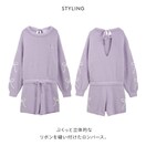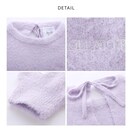 ふわふわとした起毛感と羽根のような軽やかさが特のフェザーニットに、ぷくっと立体的なリボンを縫い付けたロンパースです。