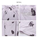 お座りポーズから、猫好きの方にはたまらない威嚇ポーズまで、表情豊かな黒猫を総柄プリントした、柔らかなカットソーロングパンツです。