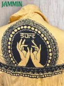 ロータスやダブルドルジェ、仏陀ハンドなどのプリント入りのフード付きロンTです。