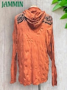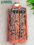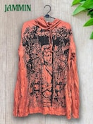 アジアン/エスニック/サイケ/ヒッピー/個性派/ロンT/長袖/Tシャツ/ロングスリーブTシャツ/フード付き/長袖/Lサイズ/締切日時
