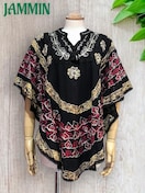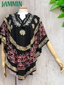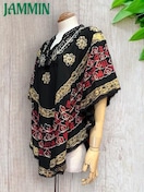 ざっくりした造りで、可愛いシルエットの刺繍&ろうけつ染めポンチョ風トップスです。