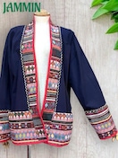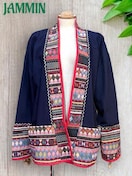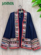 前立て部分とポケット、袖口にアジアンな織り生地付きの羽織りです。