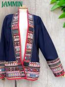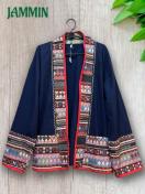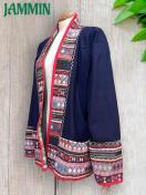 前立て部分とポケット、袖口にアジアンな織り生地付きの羽織りです。