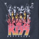 ポールスタンレーが率いる人気バンド『KISS(キッス)』の1976年に発売された代表的なアルバム『Destroyer(地獄の軍団)』のジャケットをアレンジしたデザインがフロントにプリントされたTシャツ。ファイヤーデザインがレアで、ファンにはたまらないアイテム。