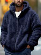 メンズ無地フリース裏地フード付きジャケット、カジュアルでスタイリッシュなスポーツ用暖かいコート、冬と秋のアウトドアウェア、ギフトに最適