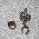 ふくろうの指輪と蹄鉄のアクセサリーのセットです、指輪のサイズはフリーサイズ、ネックレスのサイズはチェーンの長さ56センチ、トップの長さ3センチです、私が購入して身に付けたいと言う人にお譲りしますのでご検討下さい、それから小さい子どもさんがいる人が購入する場合は指輪やネックレスで遊んだり飲み込まないように気をつけて下さい。締切日時