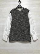 ツイードっぽいパイル地×シャツ袖のドッキングトップス♪