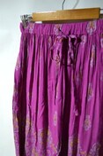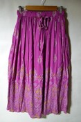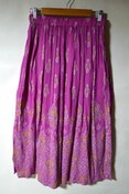 肌離れの良いレーヨンクレープ素材のロングスカート。インドならではのエキゾチックな色使いが美しい一枚。色によって異なる柄や箔プリントが妖艶な雰囲気を醸し出す。風になびくシルエットが魅力的な一枚です。