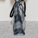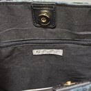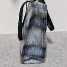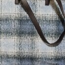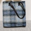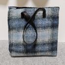 青系チェック柄のウール風トートバッグ、レザー調の持ち手付き。