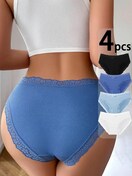 4枚セット セクシーで快適なストレッチパンティー、レーストリム付きリブ編み女性用下着、日常使いに最適なソフト素材の無地パンツ
