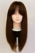 新品 人毛 ウィッグ 分け目自由 少し幅広人工皮膚付き ブラウン ストレート スーパーロング