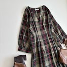チェックロングワンピース